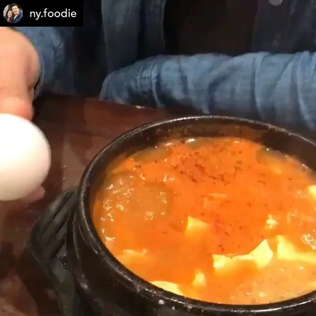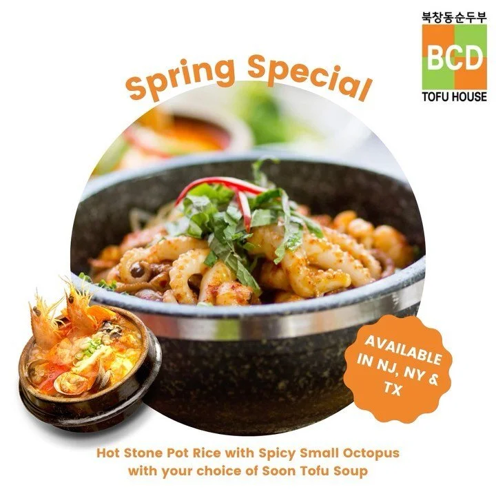 Experience our Assorted Tofu Soup that comes with beef, shrimp, and clam, served in a bubbling hot-stone pot.